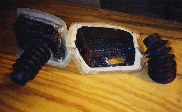 I have spent quite a time looking for a correct type of bellows to seal the opening. The problem is that there is a lot of motion of the threaded rod, while the distance from the rod to the front seat bulkhead is small. If you use a small diameter bellows you might get chaffing of the threaded rod against the rubber inside, for a large diameter bellows you get chaffing of the bellows against the bulkhead.